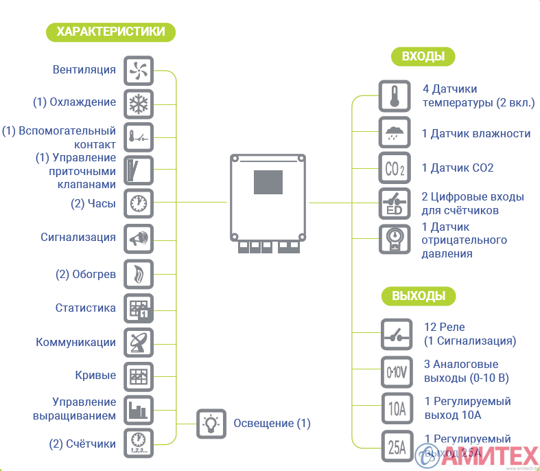 • Симисторный выход для вентиляции до 25 А