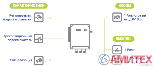 • Аналоговый вход 0-10 V или 10-0 V.